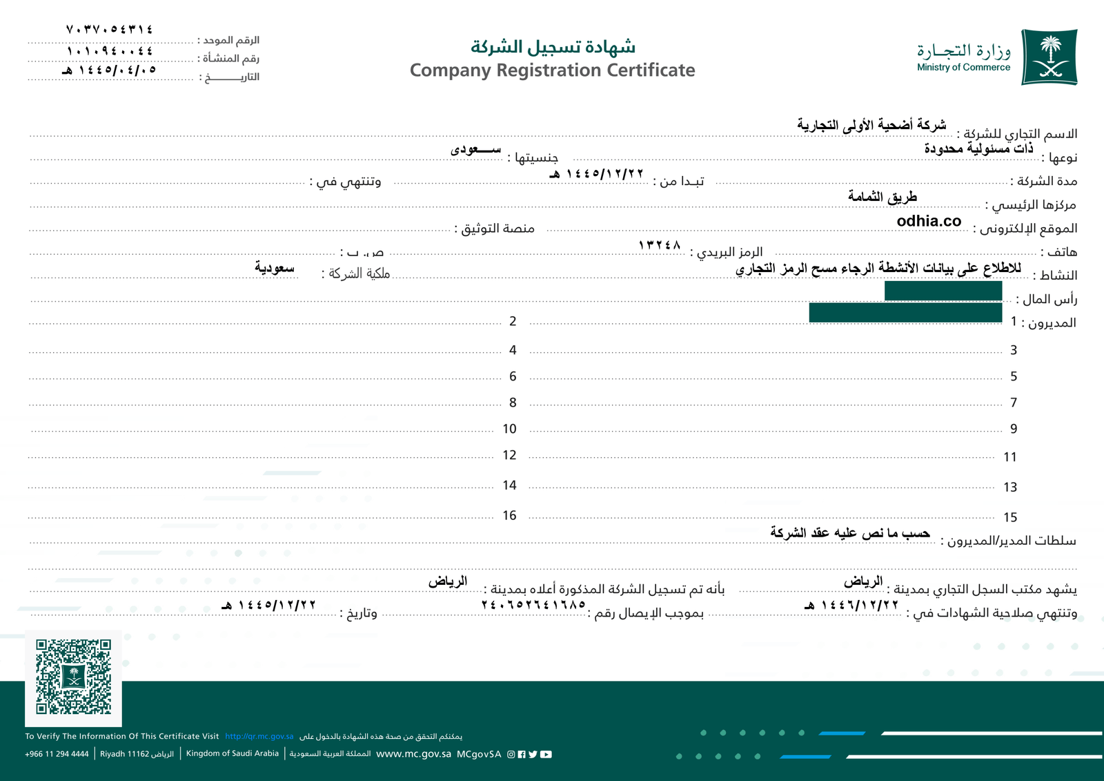 شهادة السجل التجاري الرسمي